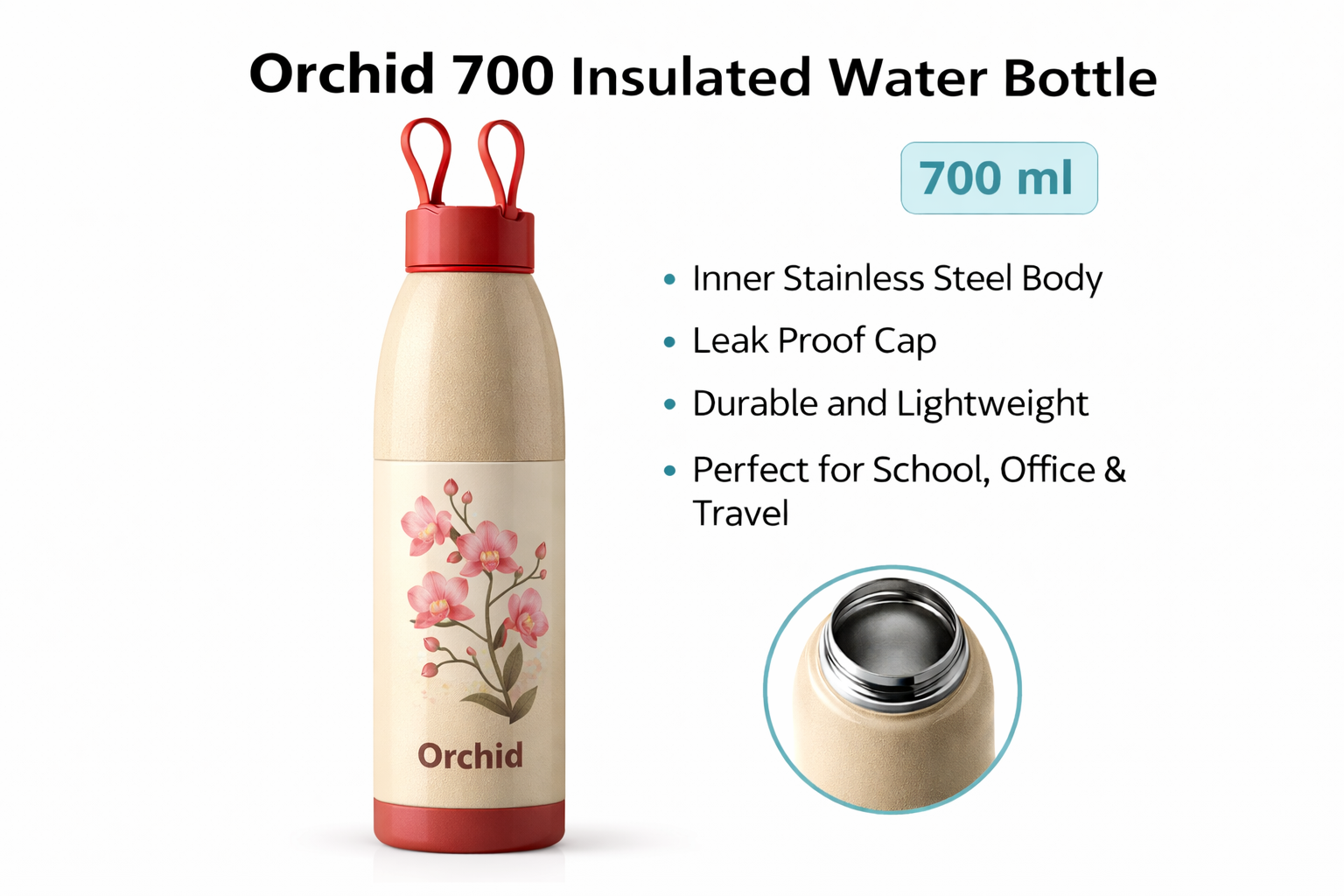 The Smarty 700 Insulated Water Bottle is designed for everyday convenience and durability. It comes with a high-quality stainless steel inner body that helps maintain the temperature of water or beverages for a longer time.
