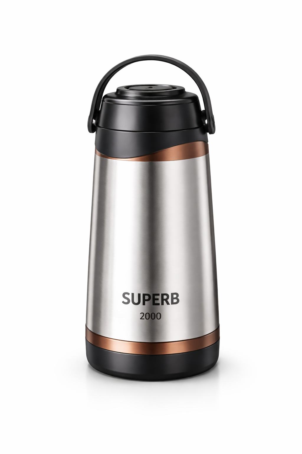 Superb 2500 Flask is a durable stainless steel insulated flask designed to keep beverages hot or cold for long hours. Its strong double-wall insulation ensures reliable temperature retention, making it ideal for tea, coffee, milk, or hot water. The sturdy lid prevents leakage and allows easy pouring. The Superb series is available in multiple capacities including 2000 ml, 2500 ml, 5000 ml, and 6500 ml, giving customers flexible options for home, office, travel, and gatherings.
