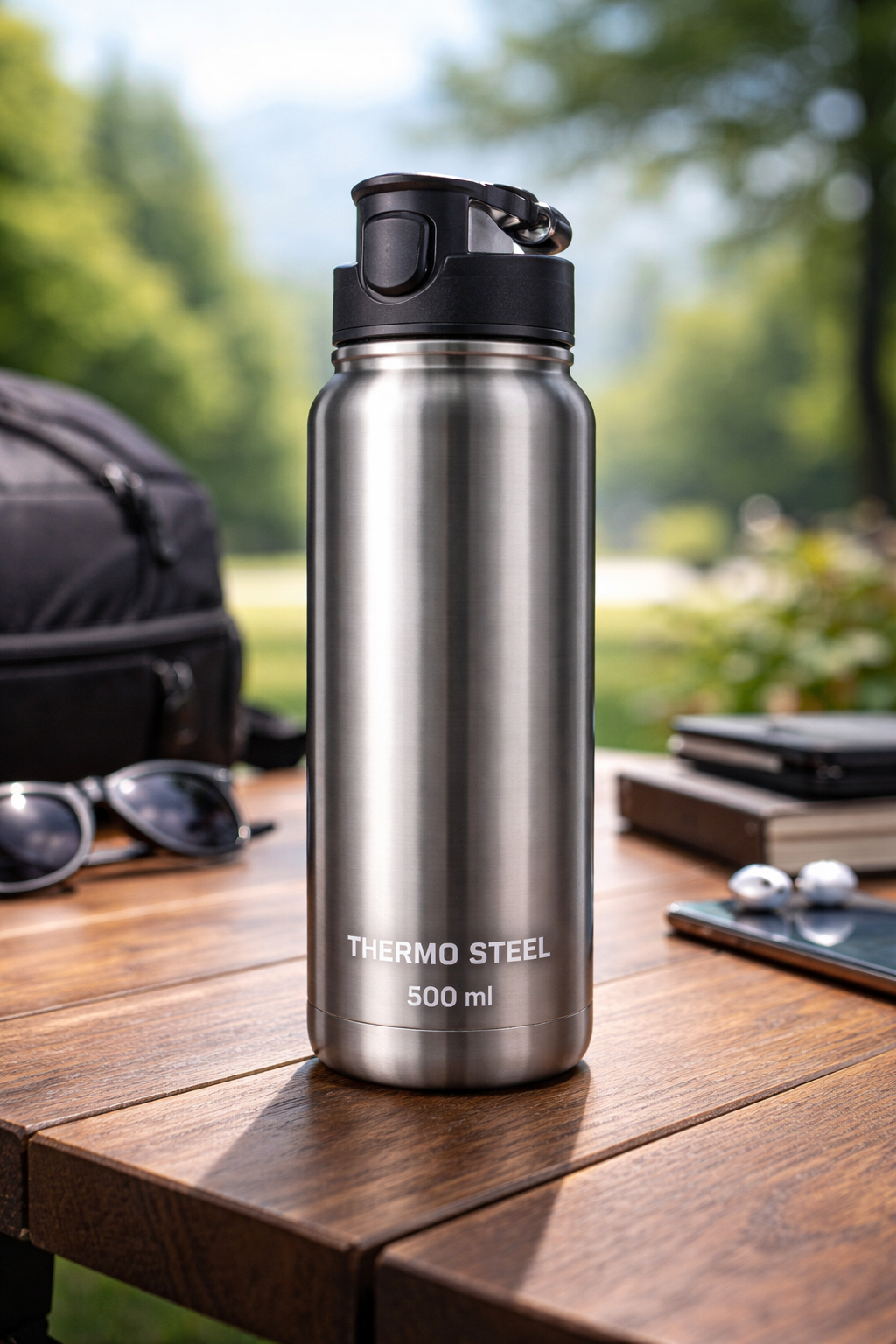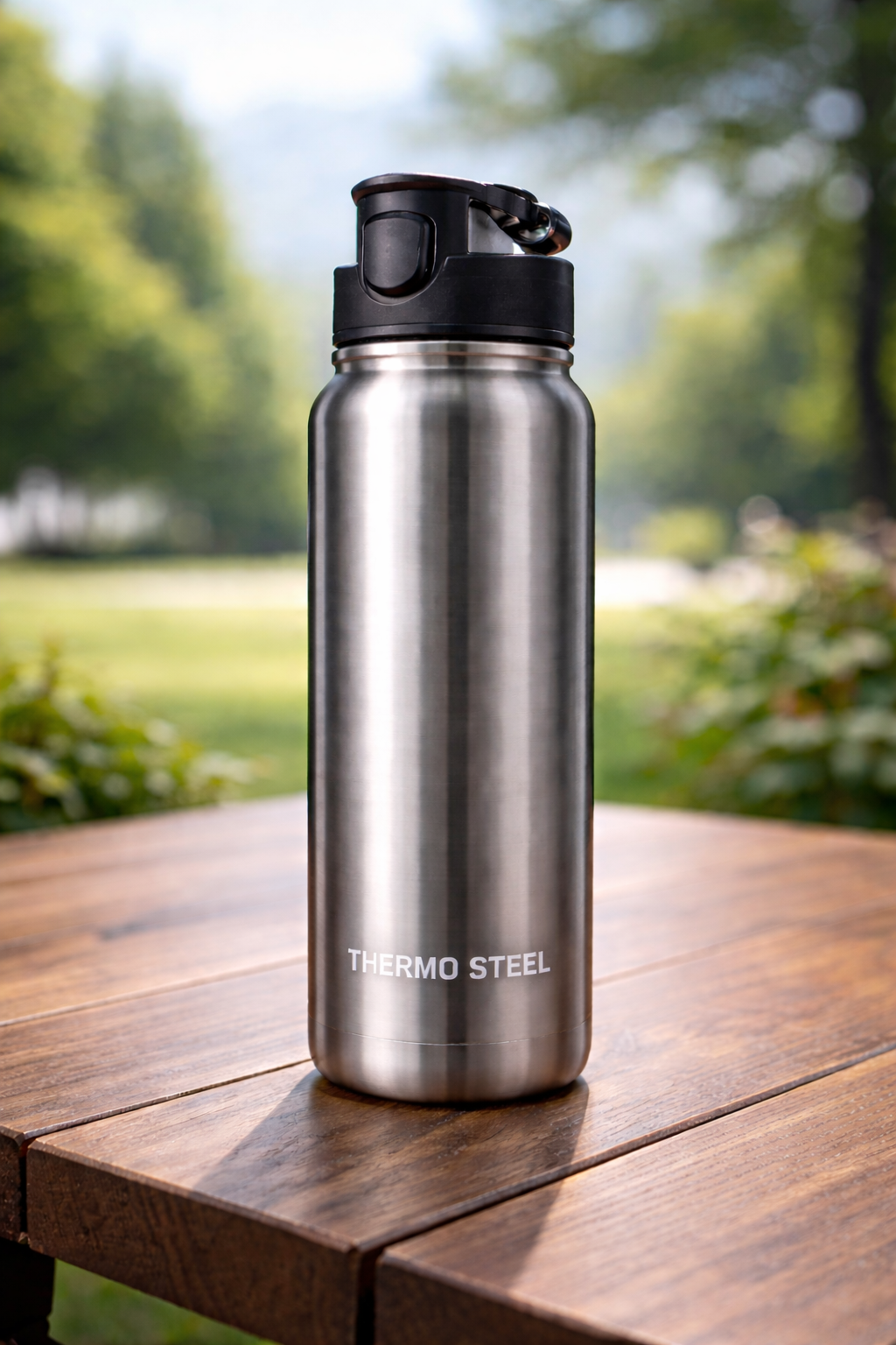The Thermo Steel Bottle 1000 ml is designed for those who need reliable hydration throughout the day. Made from high-quality stainless steel with advanced double-wall insulation, it keeps beverages hot or cold for extended hours. Its durable construction ensures long-lasting performance, while the leak-proof lid provides safe and convenient carrying. With a sleek and practical design, this bottle is ideal for office use, gym workouts, travel, outdoor adventures, and everyday activities, offering both style and functionality.